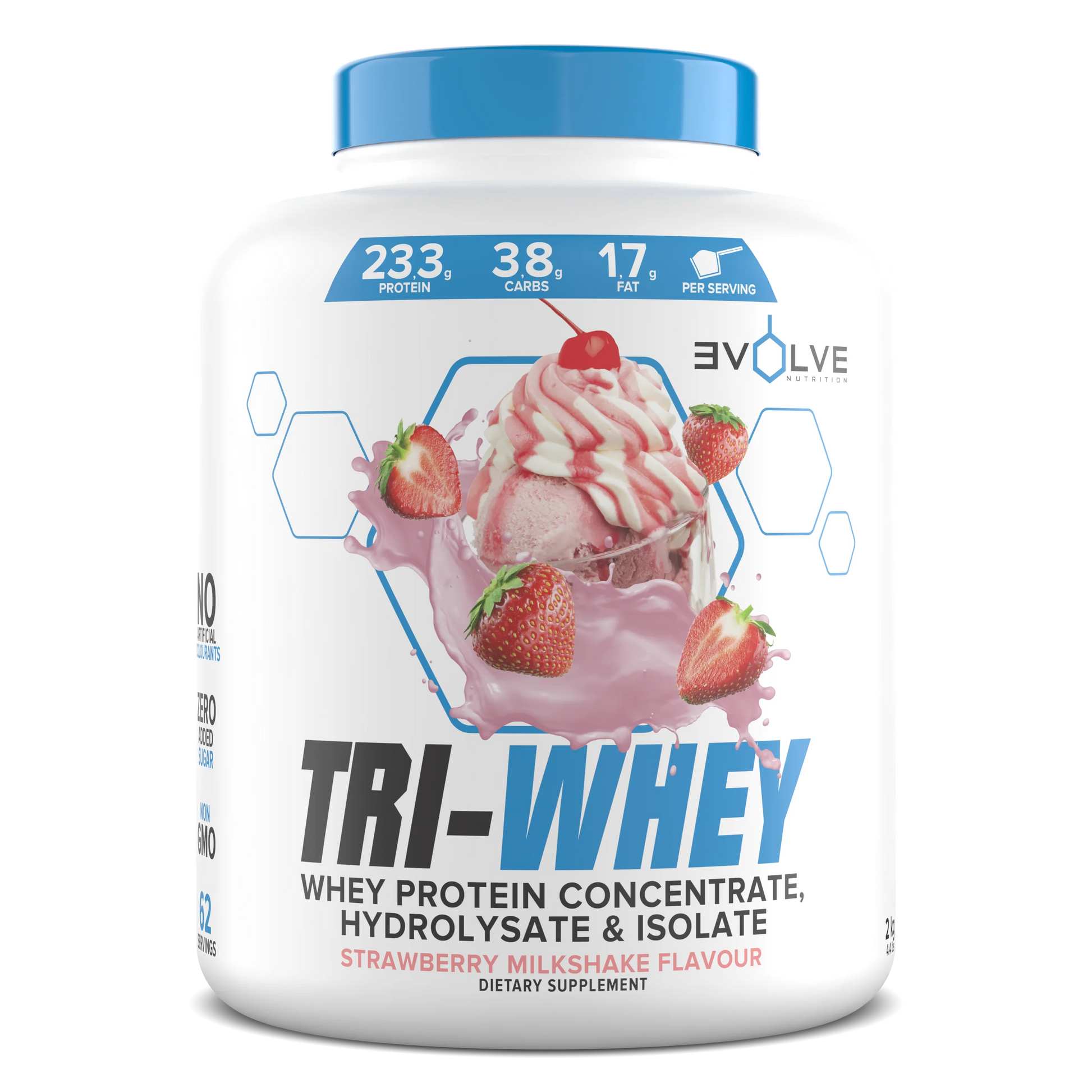 Evolve - Tri Whey - Strawberry Milkshake - 2kg (62 servings.)